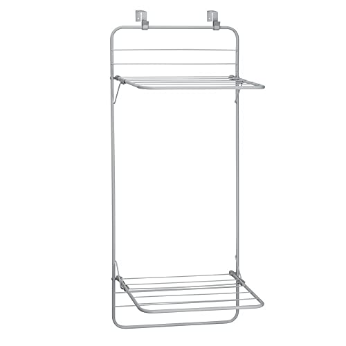 MDesign Stendibiancheria da appendere alla porta - Stendino verticale in metallo per bagno o lavanderia - Stenditoio compatto con due ripiani pieghevoli - argento/grigio