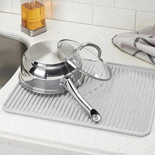 MDesign Set da 2 Tappetino silicone cucina - Grande scolapiatti da lavello e protezione superfici - Scolapiatti design antiscivolo, resiste al calore, lavabile in lavastoviglie - grigio chiaro