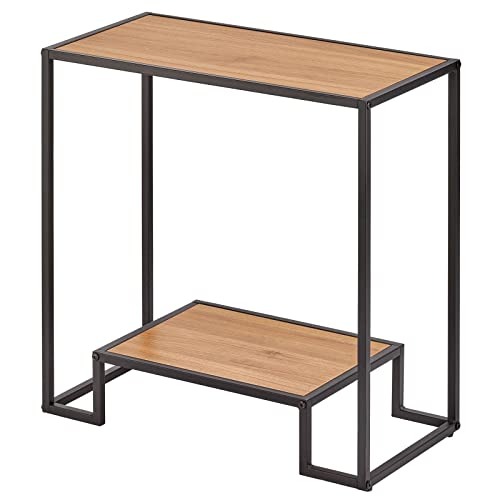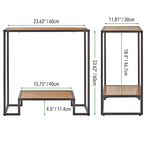 MDesign Tavolino portaoggetti per ingresso - Tavolino da salotto a due livelli in metallo e legno - Mobile consolle ingresso adatto anche in corridoio e nelle zone giorno - nero/noce