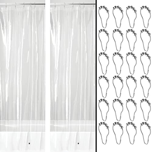 MDesign Tende per Cabina Doccia inodori e idrorepellenti con magneti sull'Orlo - Tende Box Doccia in PEVA con Ganci - Ideale Come Tenda Doccia per Vasca di Dimensioni Standard - Trasparente/Argento