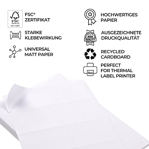 Etichette bianche universali: i fogli sono realizzati su carta autoadesiva di alta qualità con un alto grado di bianco, garantiscono stampe leggibili e colori saturi.