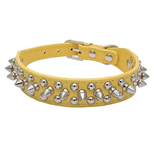 Mdurian Collare per Cani con Borchie rivettato a Spillo con Rivetti a Fungo Collari Regolabili per Animali Domestici, Giallo/l