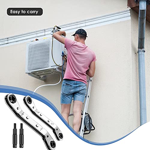 MDYBF Set di Chiavi per Servizi di Refrigerazione 3/8 X 1/4,5/16 X 1/4, Chiave un Cricchetto Valvola Condizionatore D'Aria Kit Adattatore Punta Esagonale