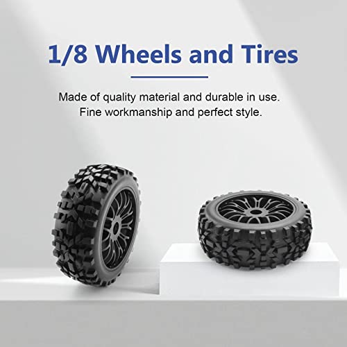 MDYBF Ruote e Pneumatici per RC da 4 Pezzi con Cerchi Esagonali da 17 Mm Auto Fuoristrada nel 1/8 per Auto da Strada RC 1:8