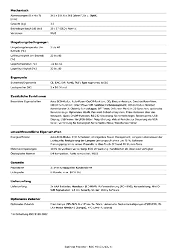 NEC ME403U LCD-Beamer - WUXGA. 3600 ANSI-Lumen. Lautsprecher