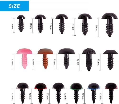 il naso di sicurezza ha due diametri, 11 mm e 12 mm. La dimensione della rondella inclusa è la stessa Abbinare gli occhi dei burattini può soddisfare le tue diverse esigenze per realizzare giocattoli grandi e piccoli.