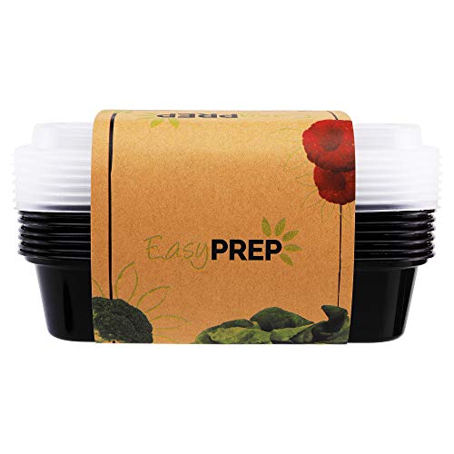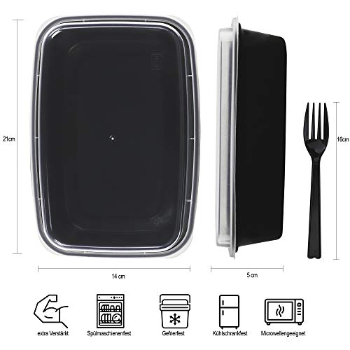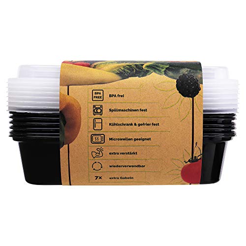 Meal Prep Containers - Contenitori extra stabili con coperchio + 7 forchette gratis, 1 scomparto e nessuna suddivisione, contenitore EasyPREP per la preparazione di cibi da 1 litro, confezione da 7 pezzi, set per una settimana, protezione antigoccia, rinforzato, certificato per alimenti, senza BPA e riutilizzabile