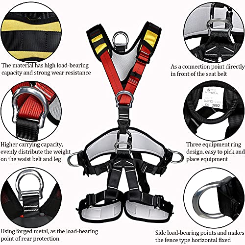 ☀ 【Applicazioni】 Imbracatura multiuso, imbracatura da arrampicata professionale per gruppi all'aperto, alpinismo, arrampicata su roccia, espansione, soccorso antincendio, lavoro aereo, protezione ingegneristica, speleologia, discesa in corda doppia, sollevamento, ecc.