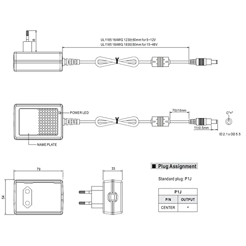 MEAN WELL GS18E12-P1J adattatore e invertitore 18 W Nero