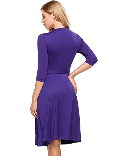 Meaneor - Vestito - plissettato - Collo a V - Maniche a 3/4 - Donna