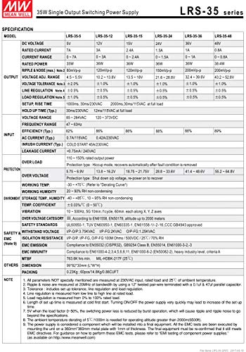 MeanWell - Alimentatore da 35 W, 12 V, 3 A, con LRS-35-12 incluso, alimentatore CA/CC.