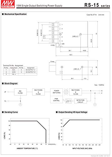 MeanWell - Alimentatore da 15 W, 24 V, 0,625 A, con RS-15-24, alimentatore CA/CC