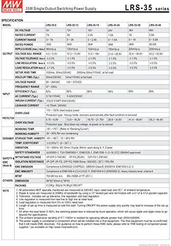 MeanWell LRS-35-24, Alimentatore CV 24V 35W 1,5A, Trasformatore Da AC 220V A DC 24V Per Striscia Led