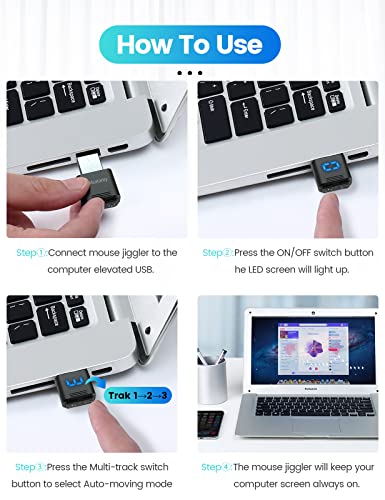【Multi-Track&Funzione di Memoria】 Il nostro mouse mover USB può realizzare 3 tracce opzionali grazie al suo pulsante modalità esclusivo, il cursore si sposterà automaticamente in modo casuale in diverse tracce e ampiezze in base alla tua scelta. Inoltre, questo simulatore di movimento del mini mouse è dotato di funzione di memoria. La prossima volta che lo accendi, continuerà a muoversi secondo la traiettoria precedente.
