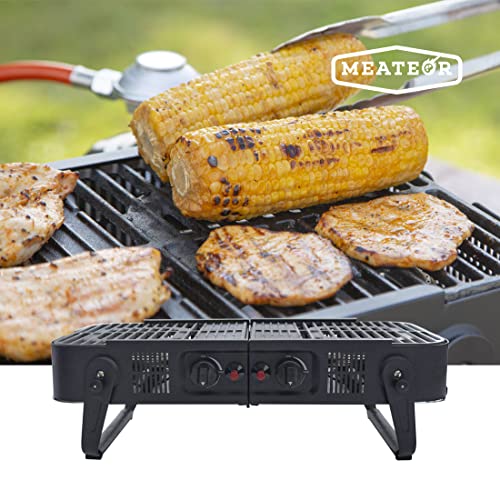 Meateor Griglia pieghevole, Fornello a gas e Piastra per plancha,per il campeggio,con 2 aree barbecue regolabili separatamente e borsa per il trasporto (Griglia pieghevole)