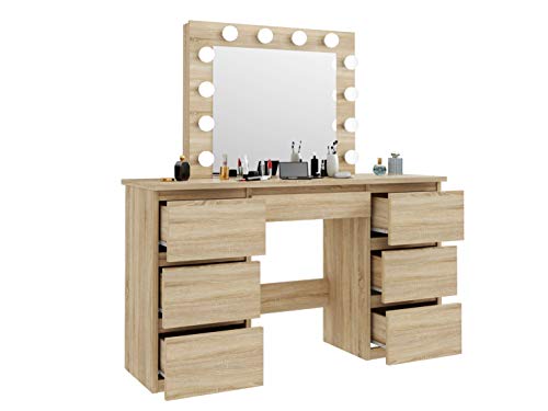 Meblowa 1 Toeletta/Tavolo da Trucco Beta 4 12 LED - Colore Rovere - Illuminato da 12 Lampade LED - Produzione Europea
