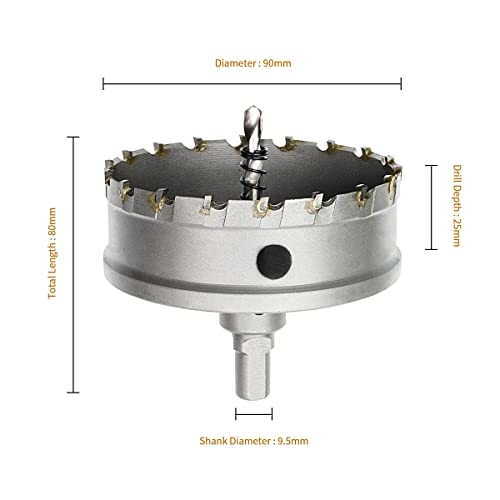 Meccion Seghe a Tazza in Carburo, Taglierina per Fori in Carburo TCT Heavy Duty per Lamiera di Acciaio Inossidabile, Metallo, Lega, Ferro, Legno (90mm)