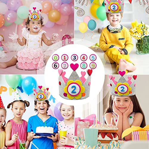Mecctuck Corona di Compleanno per Bambini, Corona di Compleanno di Tessuto, Corona di Stoffa, Corona di Compleanno per Ragazzi e Ragazze con Numeri Intercambiabili da 0 a 9