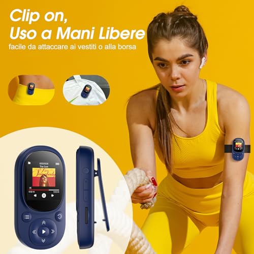 MECHEN 64GB Clip Lettore MP3 Bluetooth 5.3, Lettore Musicale Sportivo Portatile con Registrazione Radio FM Pedometro, Senza Altoparlante Incorporato (Blu)