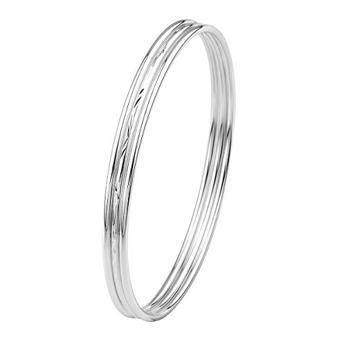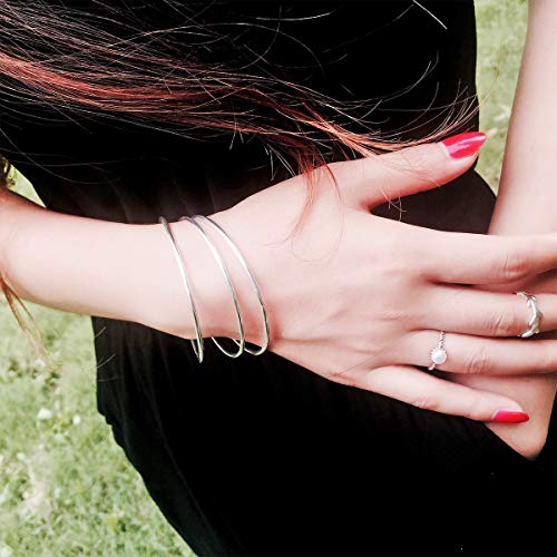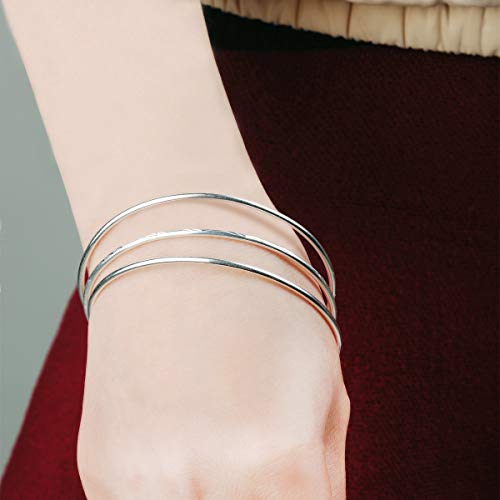 Mecool Bracciale rigido in argento sterling con tre braccialetti impilabili per donna/ragazza-taglia interna 6,7 CM