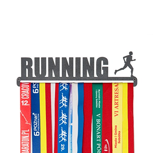 Medaglia per Medaglione - Versione Nome: Running per Uomini - 28 cm! - Medaglie per Appendere: Fino a 20 - Acciaio Rivestito con Polvere Nera.