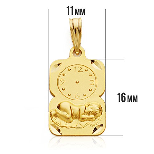 Medaglietta per bambino e bambino, con orologio, design in oro giallo 18 K, con incisione personalizzata inclusa