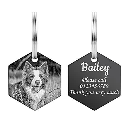 ✦ Personalizzazione frontale: è possibile stampare un'immagine del vostro animale domestico sulla parte anteriore e l'incisione posteriore potrebbe essere il nome del vostro animale domestico, il numero di telefono, l'indirizzo e il messaggio personale nel caso in cui il vostro animale domestico si perda. Nota: sul retro possono essere incisi fino a 4 righe di 12 caratteri per riga.