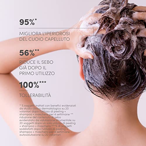 Detersione bilanciata. Purificante, detossinante, riequilibrante. Ideale per capelli stressati da ritmi frenetici e inquinamento ambientale.