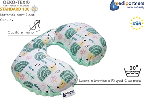 Medi Partners Cuscino cervicale per bambini 100% Cotone/Minky Cuscinetti cervicale per auto per il collo del sonno da Viaggio in Auto Passeggino (Ricci con menta Minky)