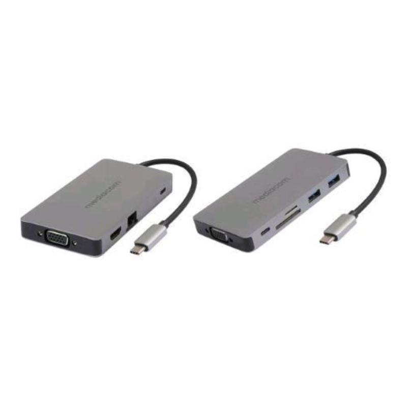 Mediacom md-c318 docking station power delivery 100 w 2 x usb-a 3.0 - 1 x usb-c 100 w - 2 x hdmi - 1 x rj-45 gigabit ethenet - 1 x vga - 1 sd memory - 1 x micro sd
