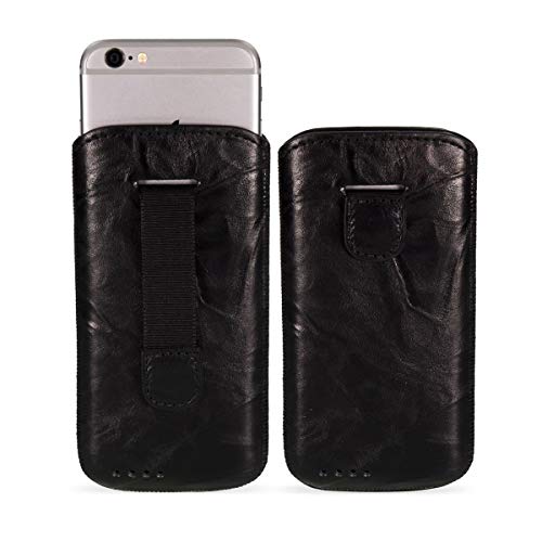 MediaDevil Apple iPhone 6/6S Case in Pelle (Nero con Cucitura Nera) con Linguetta Estraibile - Artisanpouch