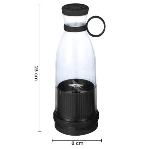 Mediawave Store - Frullatore Portatile, Mini Juice Bottiglia, Smoothie, Frullatore Portatile Ricaricabile, 420ml,Per Viaggio, Palestra, Vacanza, Gita, Ricarica Usb (Nero)