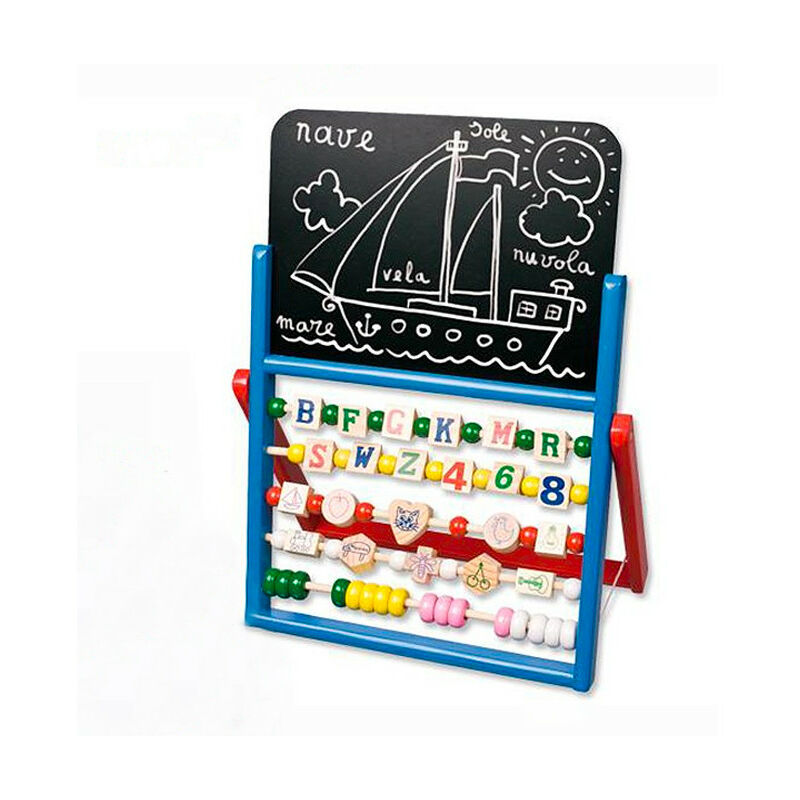 Dai ai tuoi bambini un posto da esplorare con la loro creatività con la lavagna in legno con cavalletto, pallottoliere e abaco, ideale per scrivere note, lasciare messaggi, scrivere e disegnare e tanto altro ancora! Ogni artista in erba ha bisogno di un posto dove dar sfogo alla propria immaginazione, divertimento facile e pulito, una volta che il tuo piccolo Picasso ha terminato il suo disegno può cancellarlo in un istante e et voilà, pronto per il nuovo utilizzo! Un magnifico e istruttivo Playset tutto in legno, dove il vostro bambino può imparare a scrivere e a contare. Abilità da Sviluppare - Incoraggia lo sviluppo e la creatività della tua piccola stella Imparare fin dalla più tenera età a contare e a disegnare divertendosi, è il modo più semplice che esiste! Con la lavagna educativa non c'è spazio per la noia Sviluppa creatività e manualità del bambino Il tuo bambino apprenderà e giocherà senza neanche accorgersene Caratteristiche Materiali: Legno Dimensioni: 45 x 32 cm