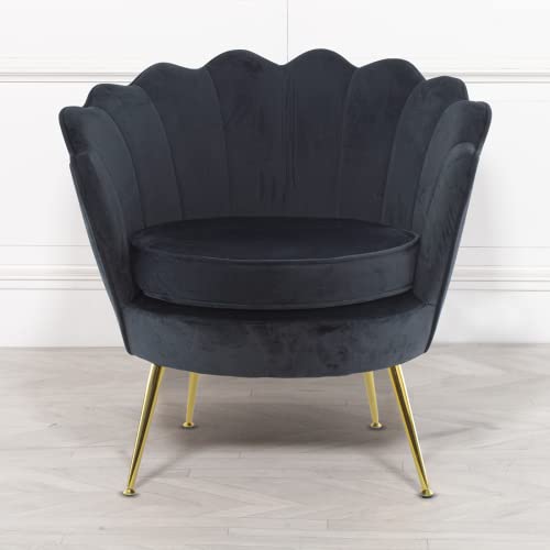 Mediawave Store - Poltrona Imbottita con Schienale a Conchiglia, in Velluto, Sedia Stile Vintage, Piedi in Metallo Oro, Sedia Poltrona da Salotto, Soggiorno (Black)