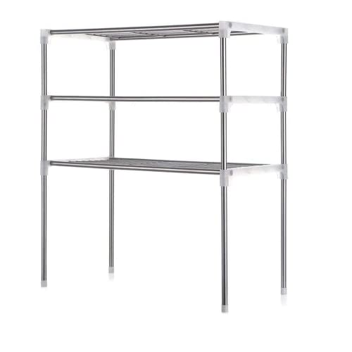 Mediawave Store - Scaffale Salvaspazio Per Microonde 3 Ripiani, Mobile per Cucina, Gancetti Porta Utensili, Rack Organizzatore Cucina, Bagno, Mensole, Organizer, Scaffale in Metallo