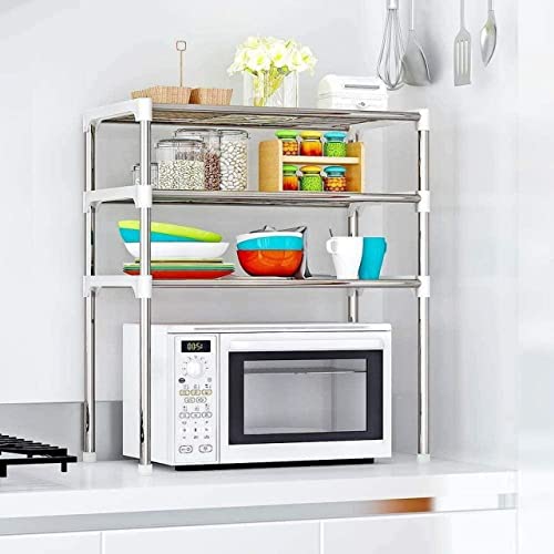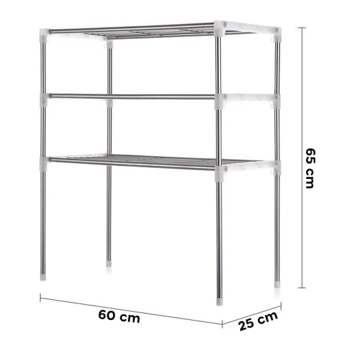✔️ Scaffale per microonde, organizzatore in metallo con 3 ripiani, mensole e gancetti per gli utensili. Montaggio semplice e veloce - Le dimensioni sono: HxBxP - 65x60x25 cm - La confezione include: 1x Scaffale - 4x Gancettire utensili - Facile da montare - Adatto anche a bagno e ripostiglio