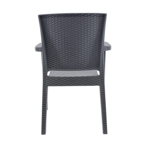 Mediawave Store - Set Sedie da Giardino, NARCISO in Resina, Effetto Rattan, Sedia con Braccioli, da Esterno, Impilabile, Arredo Giardino, Sedie Resistenti, Terrazzo, Esterni (2, Grigio Scuro)