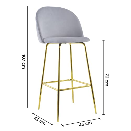 Mediawave Store - Sgabello in Velluto, da Bar, Sgabello Struttura Color Oro, Sgabello Schienale Alto, Imbottito, Sgabello con Poggiapiedi (2, Grigio)