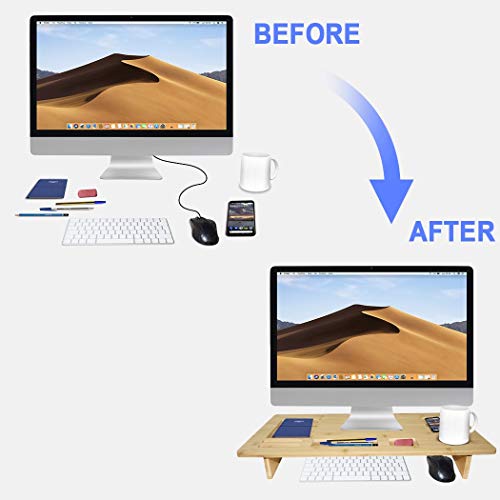 Mediawave Store - Supporto Monitor Porta Pc Laptot Tavolino Tavolo per Notebook di bambù, Organizzatore Supporto Computer PC con 7 Slot di Diverse Dimensioni e Forme, Multifunzione in Legno