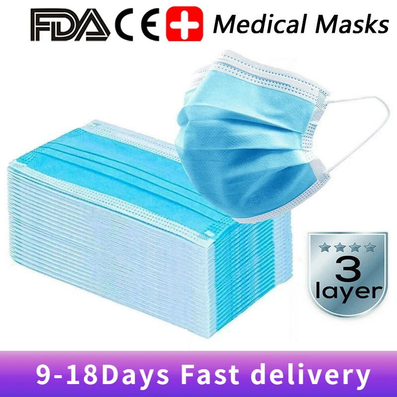 Medical Mask Adult 3 Layer Non-woven Mask Facial Disposable Face Mask Protective Elastic Earloop Fast Delivery