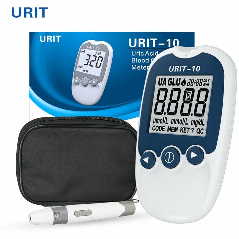 Materiale: PVC di grado medico Tipo di prodotto: Glicemia Certificazione: CES Dimensioni: Dimensioni: 104 x 60 x 21 mm Modello: YK-URIT-10 Intervallo di concentrazione di acido urico: 150umol/L~1200umol/LB Intervallo di concentrazione di glucosio nel sangue: 1,1 mmol/L ~33.3mmol/L Velocità test: 5s/25s Funzione memoria: 2*200 imposta metri Batteria: CR2032 (DC 3V) Adatto per: diabetici, anziani, donne incinte, pazienti affetti da gotta Facile da trasportare: borsa per il trasporto regalo Contenuto della confezione: UGM1 U10: acido urico - Misuratore di glucosio nel sangue X1 + Strisce reattive per acido urico X50 pezzi. Caratteristiche: 1. 25 secondi per misurare l'acido urico, 5 secondi per misurare la glicemia. 2. Un dispositivo può misurare separatamente la glicemia + l'acido urico3. Micro raccolta del sangue, penna per la raccolta del sangue ad alta elasticità, meno dolore, meno stress mentale, circa 1,5 ul di campione di sangue possono misurare con precisione il livello di acido