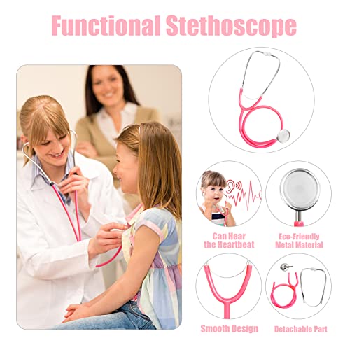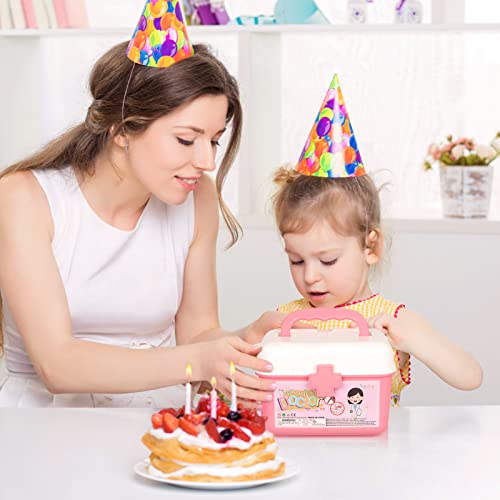 Kit Medico Gioco in Legno Kit Rosa Valigetta Dottore Bambini Gioco di Ruolo Bambini per Ragazzi Ragazze 3 4 5 Anni, 43 Pezzi