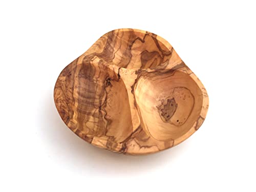 Prodotto naturale: la ciotola a 3 scomparti è realizzata in 100% legno di ulivo massiccio. Il materiale utilizzato è una materia prima naturale e rinnovabile. La superficie in legno è trattata in modo naturale e viene levigata e oliata con olio vegetale.