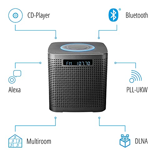 MEDION P64430 - Sistema audio micro WLAN con Amazon Alexa (impianto compatto, 2 x 15 W RMS, PLL UKW, DLNA, lettore CD/MP3, controllo vocale, funzione multiroom, streaming musicale, colore: nero
