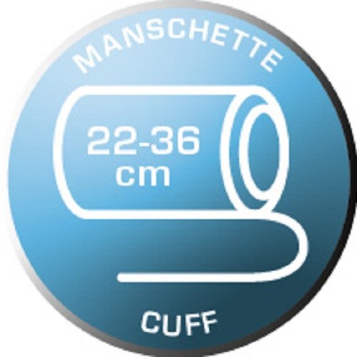 Per la parte superiore del braccio: il manicotto è adatto per braccia di circonferenza dai 22 ai 36 cm. Il grande display indica i valori per sistole, diastole, polso e la data