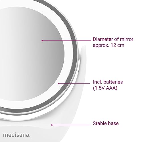 Medisana CM 835 specchio da trucco rotondo - Specchio da tavolo con illuminazione a LED e ingrandimento 5x - Specchio da trucco con funzione di rotazione a 360°