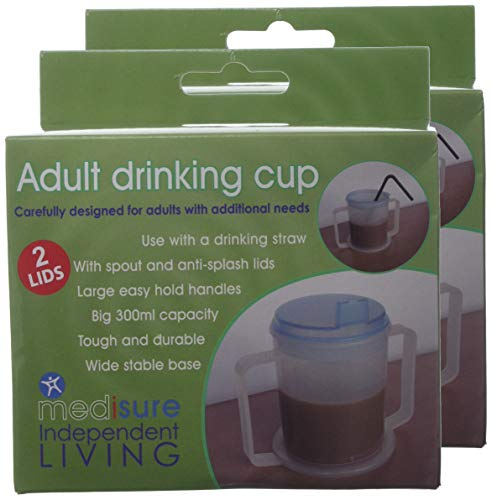 Medisure Twin Pack Anti-Splash Anziani OAP Durevole Riutilizzabile Base Ampia Grande Manici 300 ml Adulto Bere Tazza