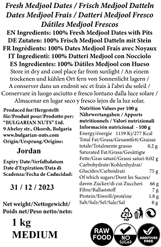 1 kg Medjool Datteri Naturale Fresco, Dimensione Medio, Scatola di Cartone
