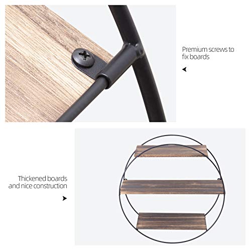 MATERIALE RESISTENTE E DI ALTA QUALITÀ: mensole da muro rotonda è realizzato in legno di alta qualità e struttura in metallo saldato ad alto spessore, che non è facile da deformare e la vernice non è facile da staccare, stabile e durevole. Può essere utilizzato in diversi stili di spazio per visualizzare la tua opera d'arte personale, piccoli oggetti, piante e libri. Grazie al moderno design industriale, può facilmente abbinarsi anche agli altri mobili.
