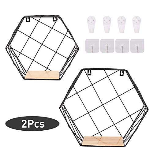Medla Set di 2 mensole da Muro Esagonale, mensole da Parete Moderne mensole esagono Legno mensola Bagno mensole esagono in Metallo mensole da Muro Design Soggiorno mensola cameretta mensola angolare